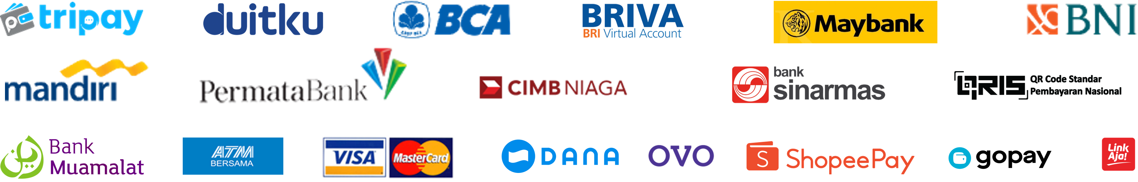 Kami menyediakan berbagai channel pembayaran untuk memudahkan pelanggan kami dalam bertransaksi mulai dari Virtual Account, QRIS, Retail hingga Kartu Kredit